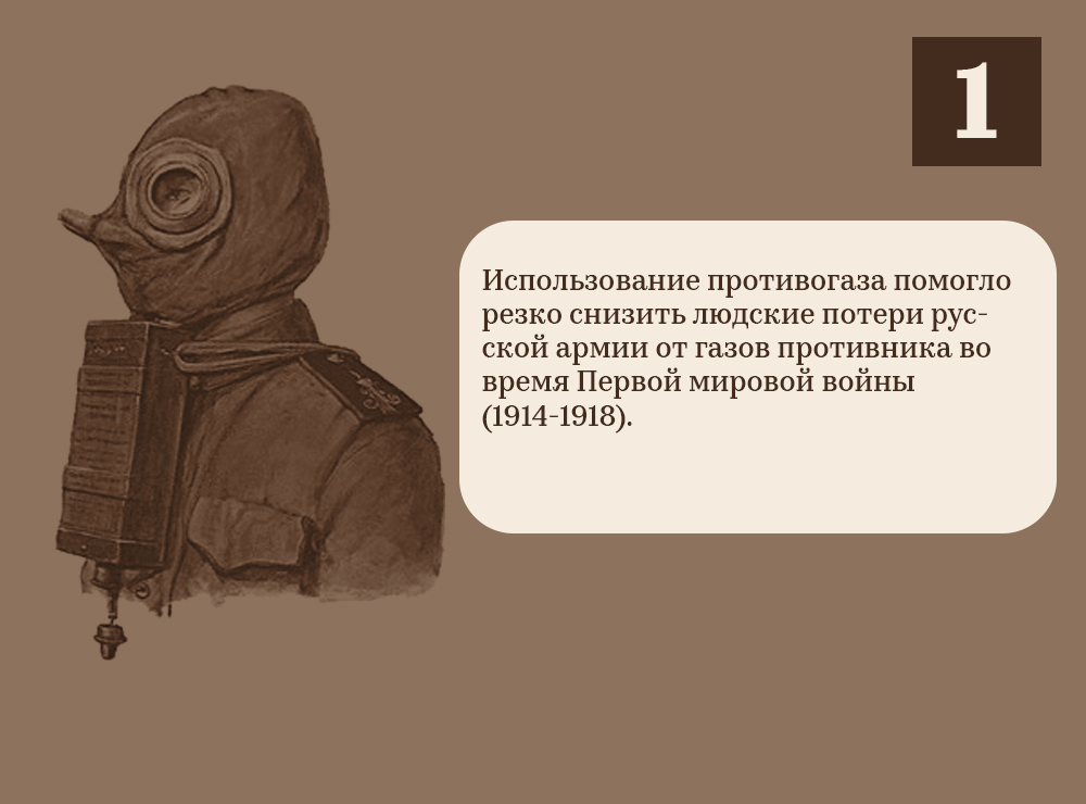 Николай Зелинский принципиально не хотел патентовать свой противогаз. Он считал, что безнравственно наживаться на человеческих несчастьях. Россия передала своим союзникам в Первой мировой войне безвозмездно право на производство угольного противогаза, что помогло резко снизить людские потери русской армии от газов противника.